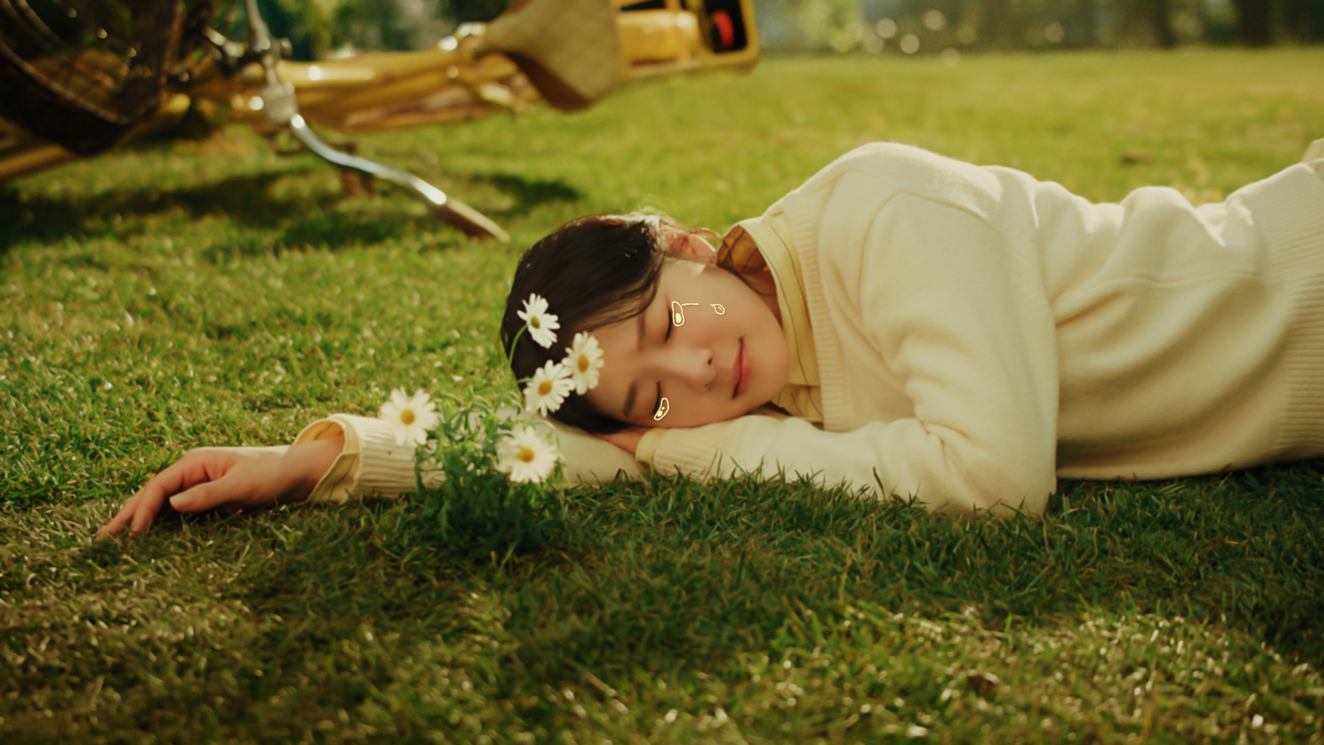 <제자리로 돌아오면 일상 – 감상편> 오프닝은 잔디에 누워 있는 김연아 님 클로즈업으로 시작합니다. “공원에서 찍었나?” 싶을 정도로 자연스럽죠.