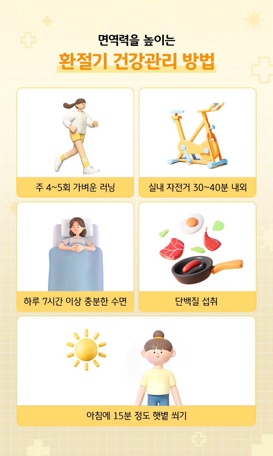 충분한 수면과 규칙적인 운동, 균형 잡힌 영양 섭취를 통해 환절기 면역력을 꾸준히 관리하는 것이 중요합니다.